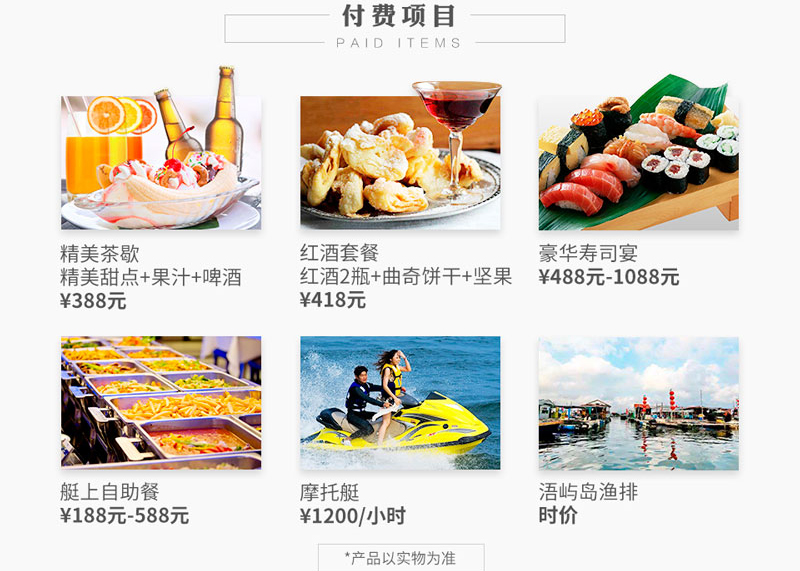 | 香山游艇港-戰俘島 (特價) 3小時 詳情 > | ¥5500元 | - |